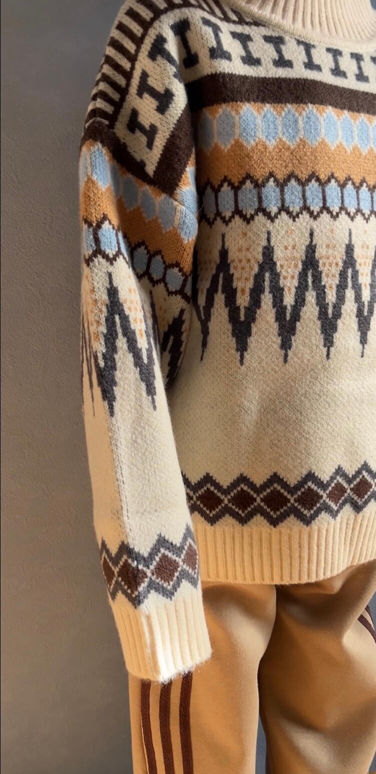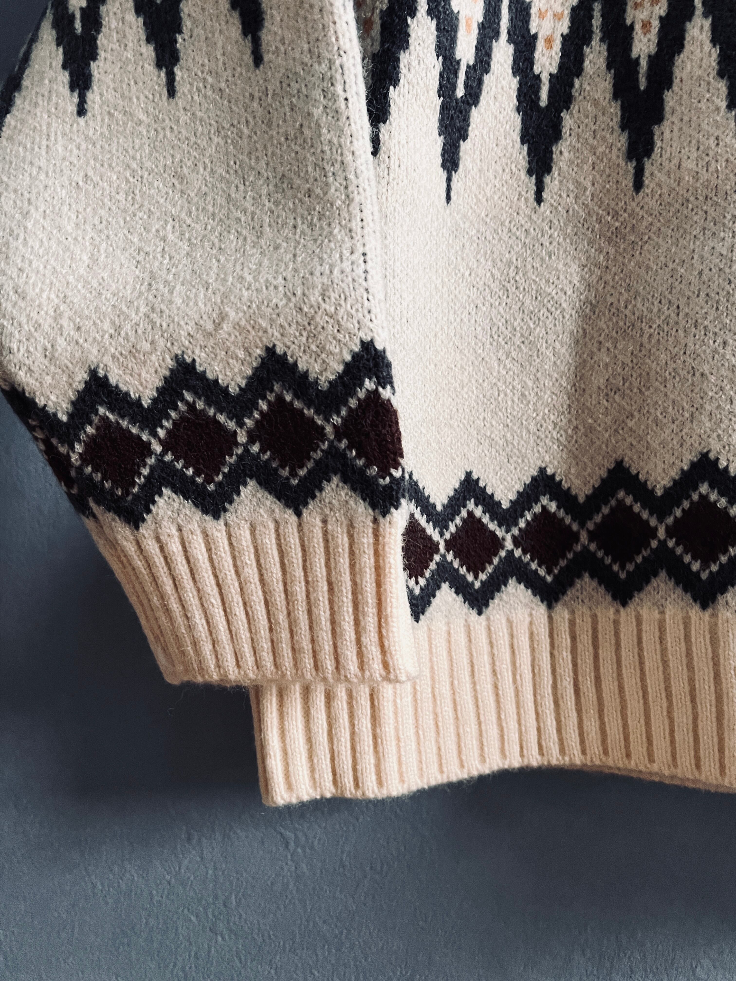 甘めな雰囲気に仕上げた、可愛らしいノルディック柄ニット。