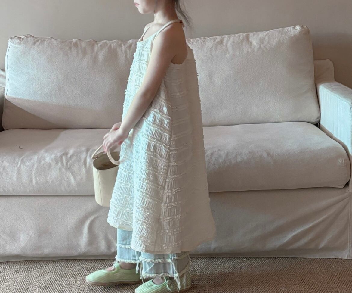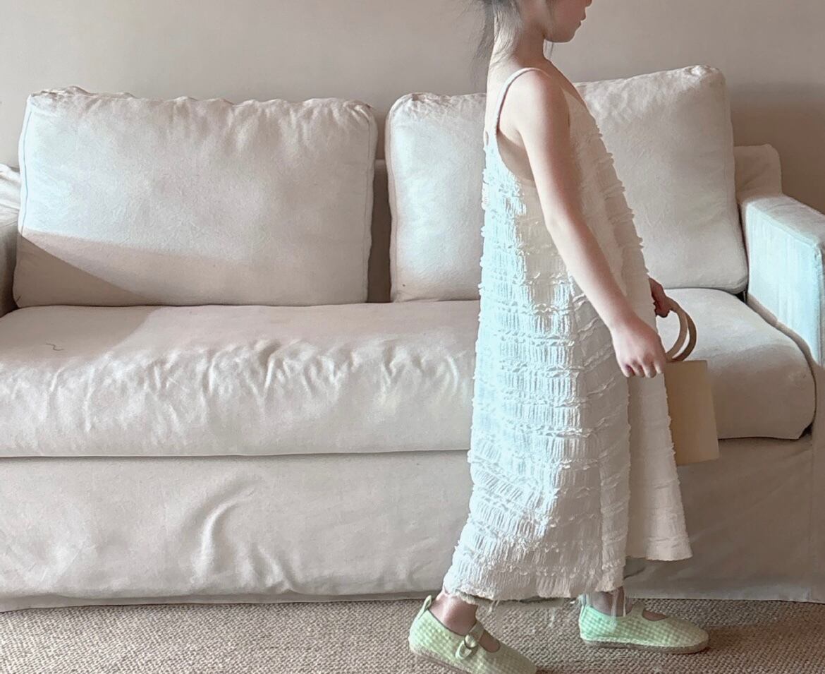 春は重ね着に、夏はキャミに合わせても可愛いノースリーブワンピースです◎