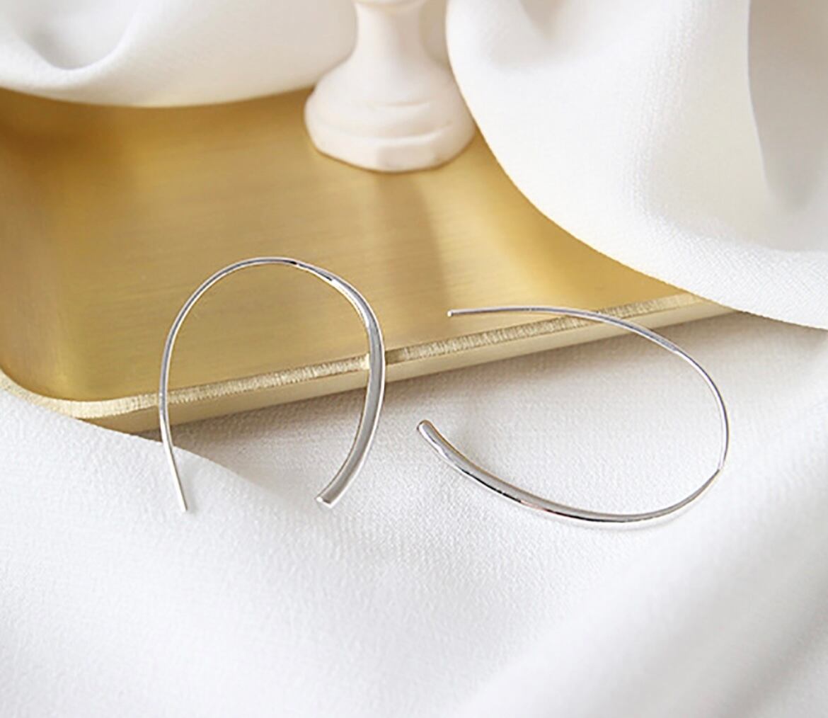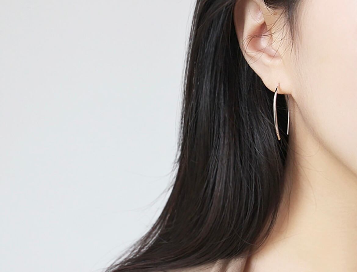 ピアスホールにワイヤーを通すだけのフックピアスで、気軽に着脱できるのもポイント◎