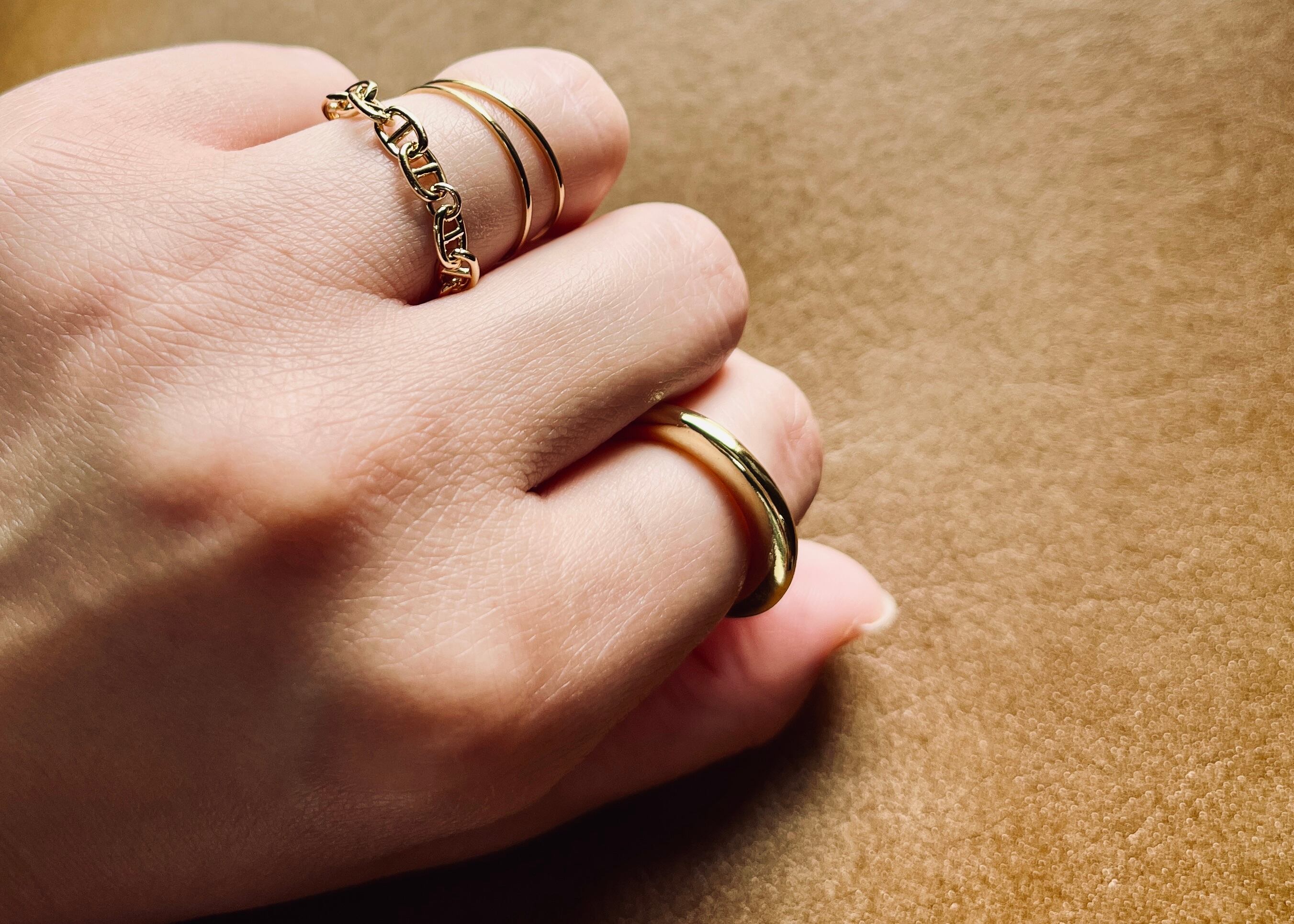 1本でももちろん、チェーンリングや華奢リングとの重ね付けもおすすめです◎