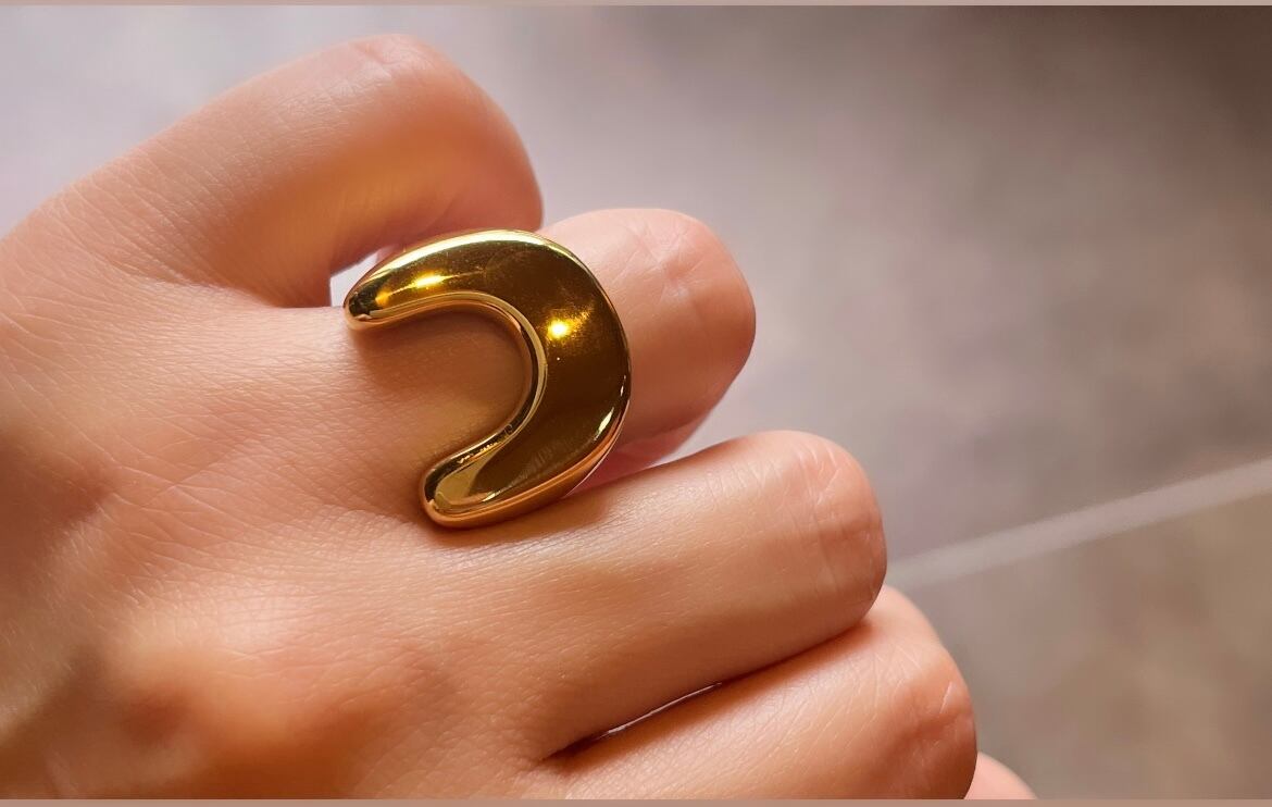 季節問わず使いやすいリングで、ワイドなフォルムが手元のアクセントなります◎