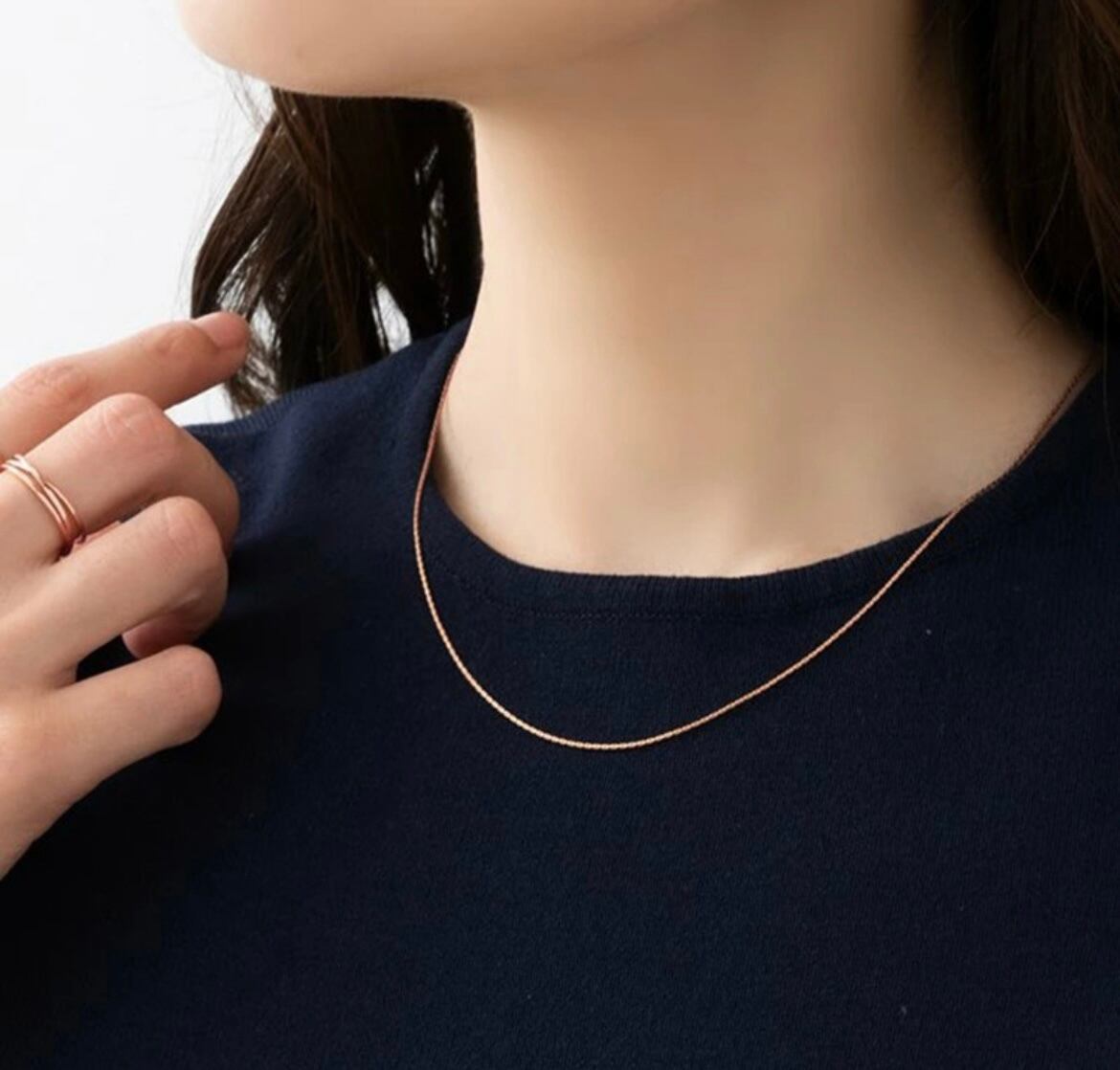 シンプルながらもサイズ感やカラーで、いつものコーディネートに合わせるだけで大人コーディネートを完成させてくれるシンプルネックレスです。