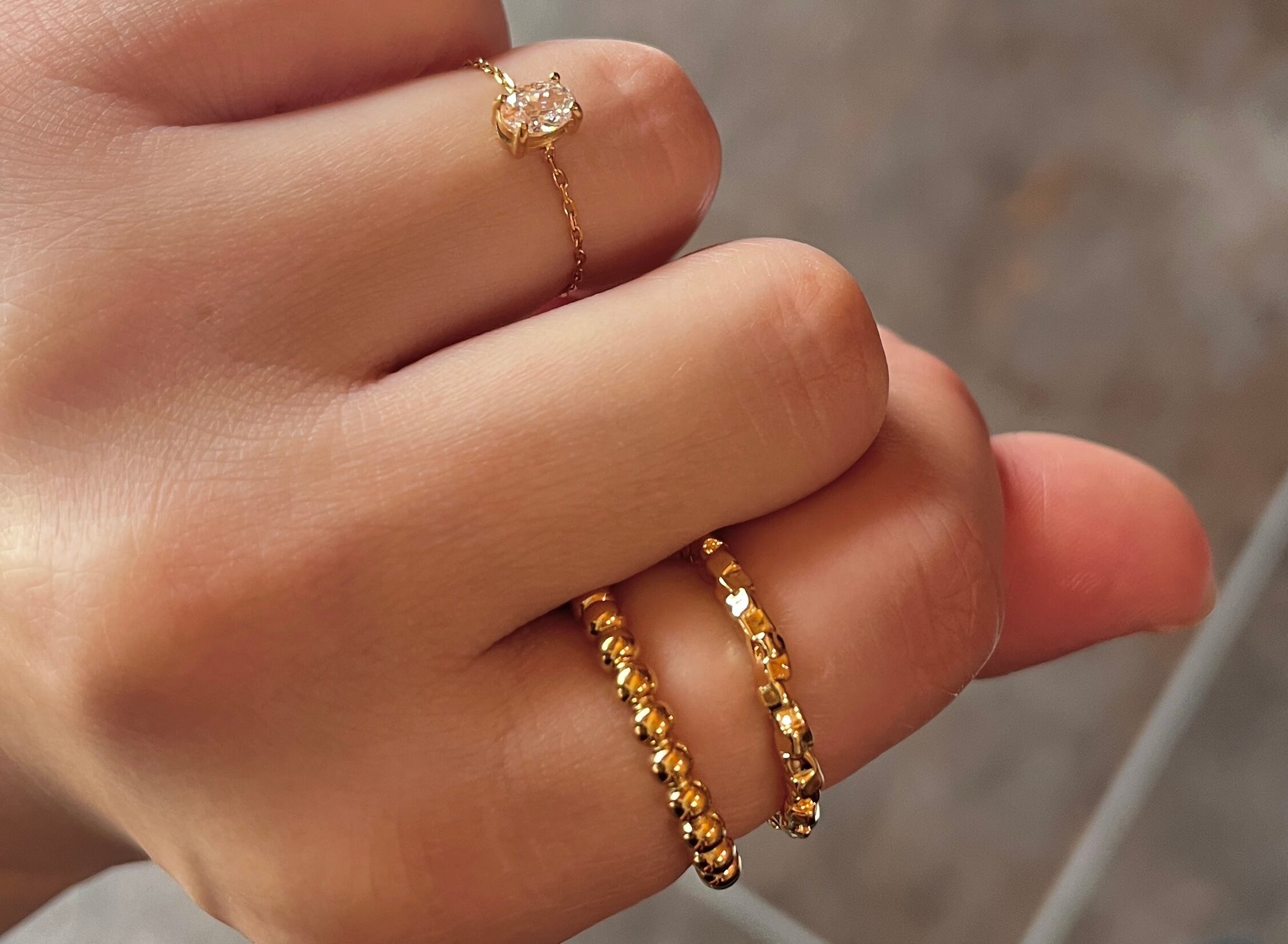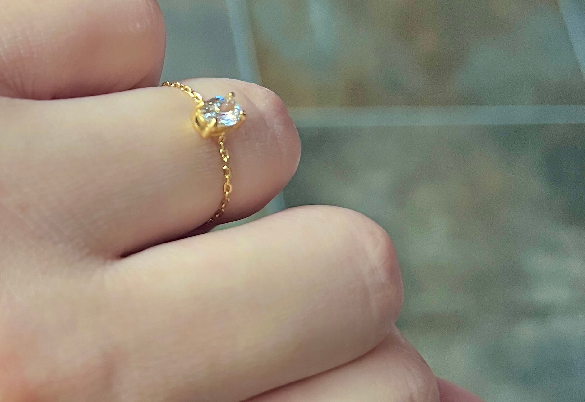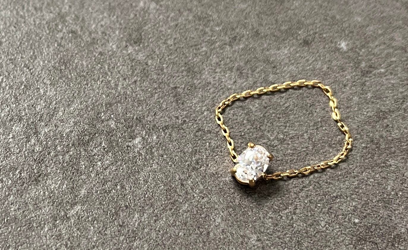 重ね付けにアレンジするのにもちょうどいいボリュームで、印象的なチェーンリングです◎