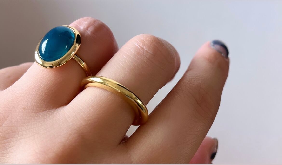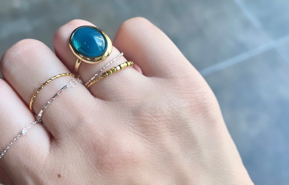 華奢なリングやメタルリングと合わせてつけるのもおすすめです。